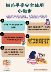 使用網路平臺的安全考量重點,一是不讓惡意的內容隨之流入電腦或手機,二是不讓隱私和個人資料流到網上,方法如下