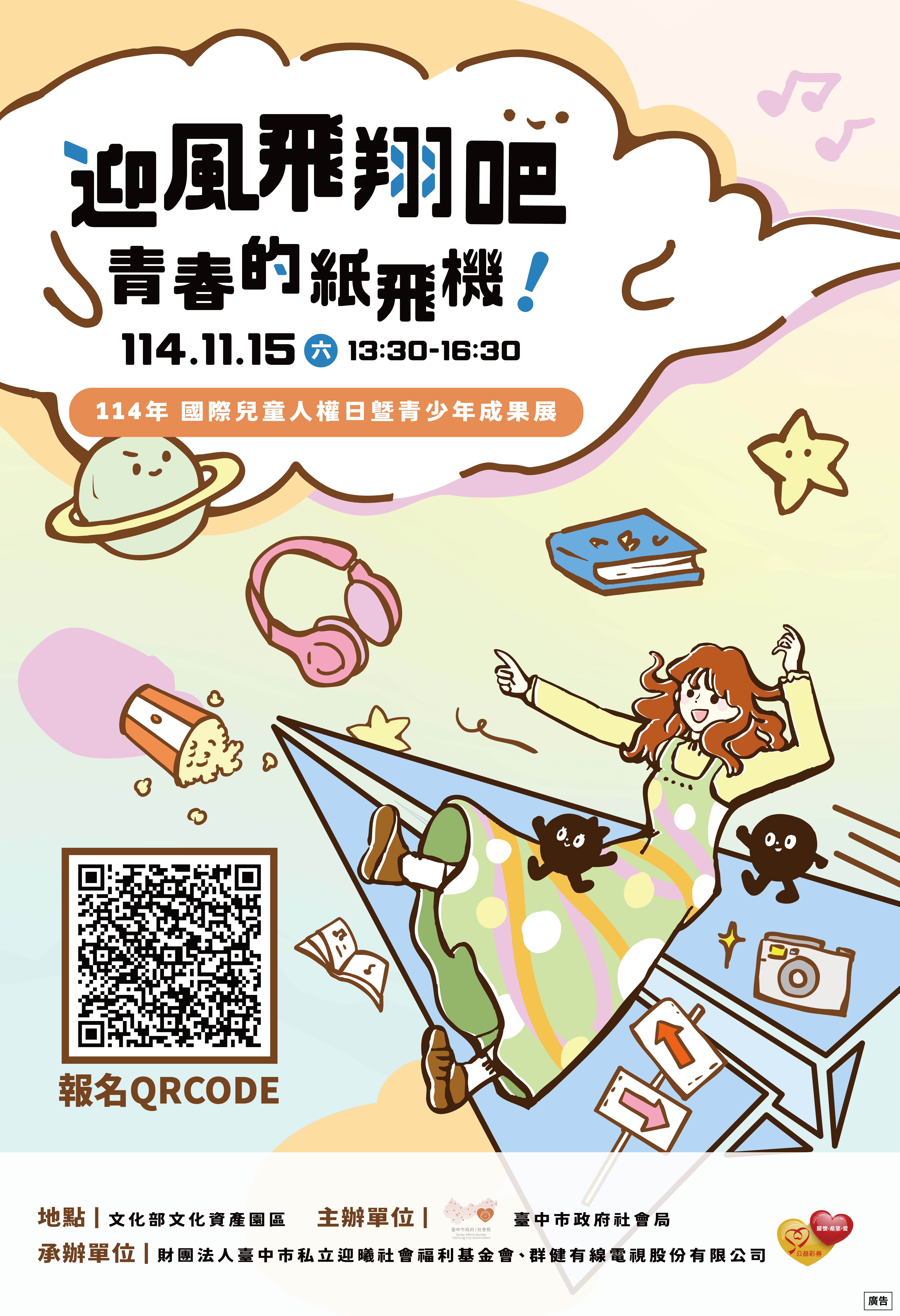 「迎風飛翔吧 青春的紙飛機!」114年國際兒童人權日暨青少年成果展
