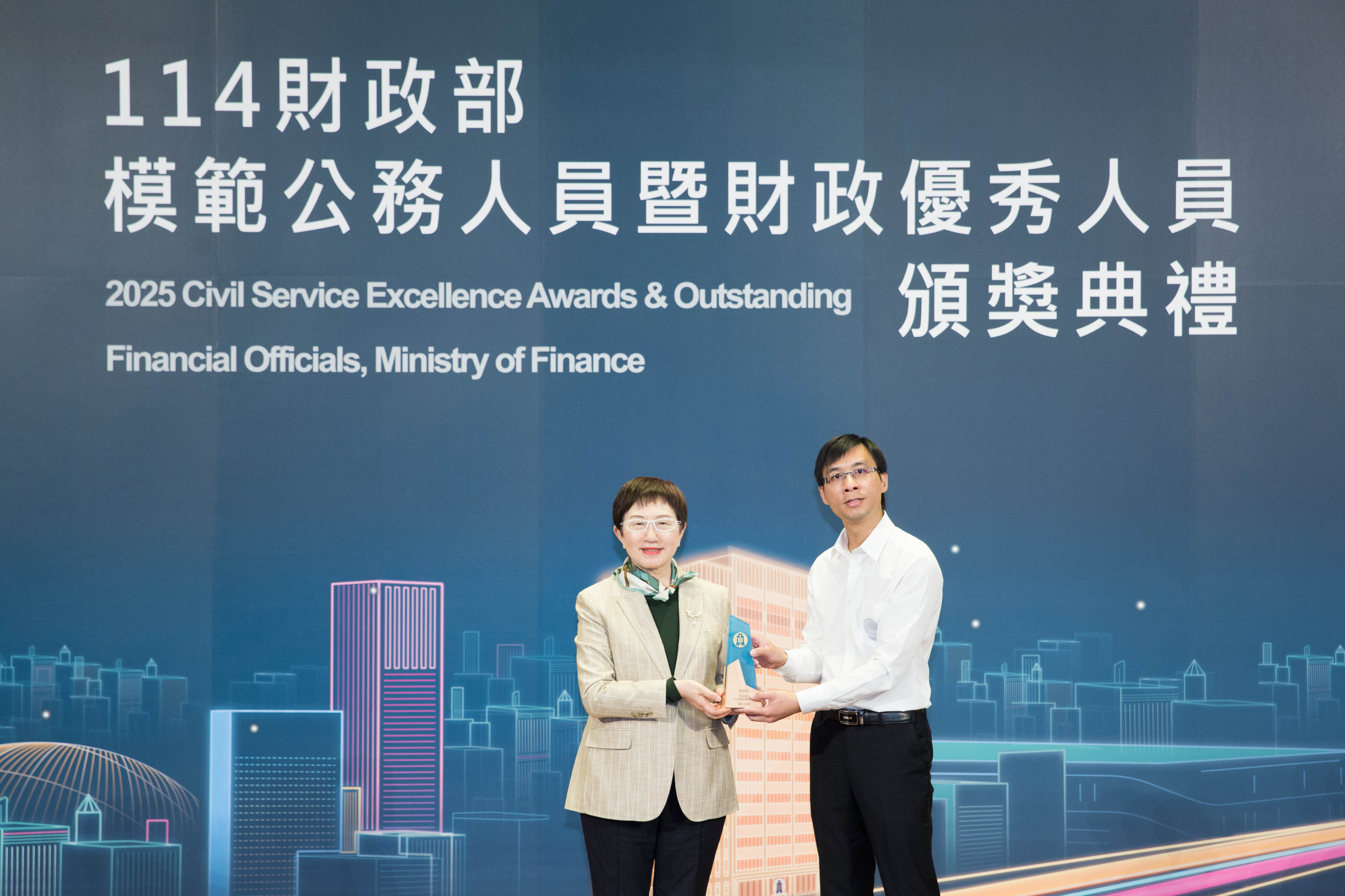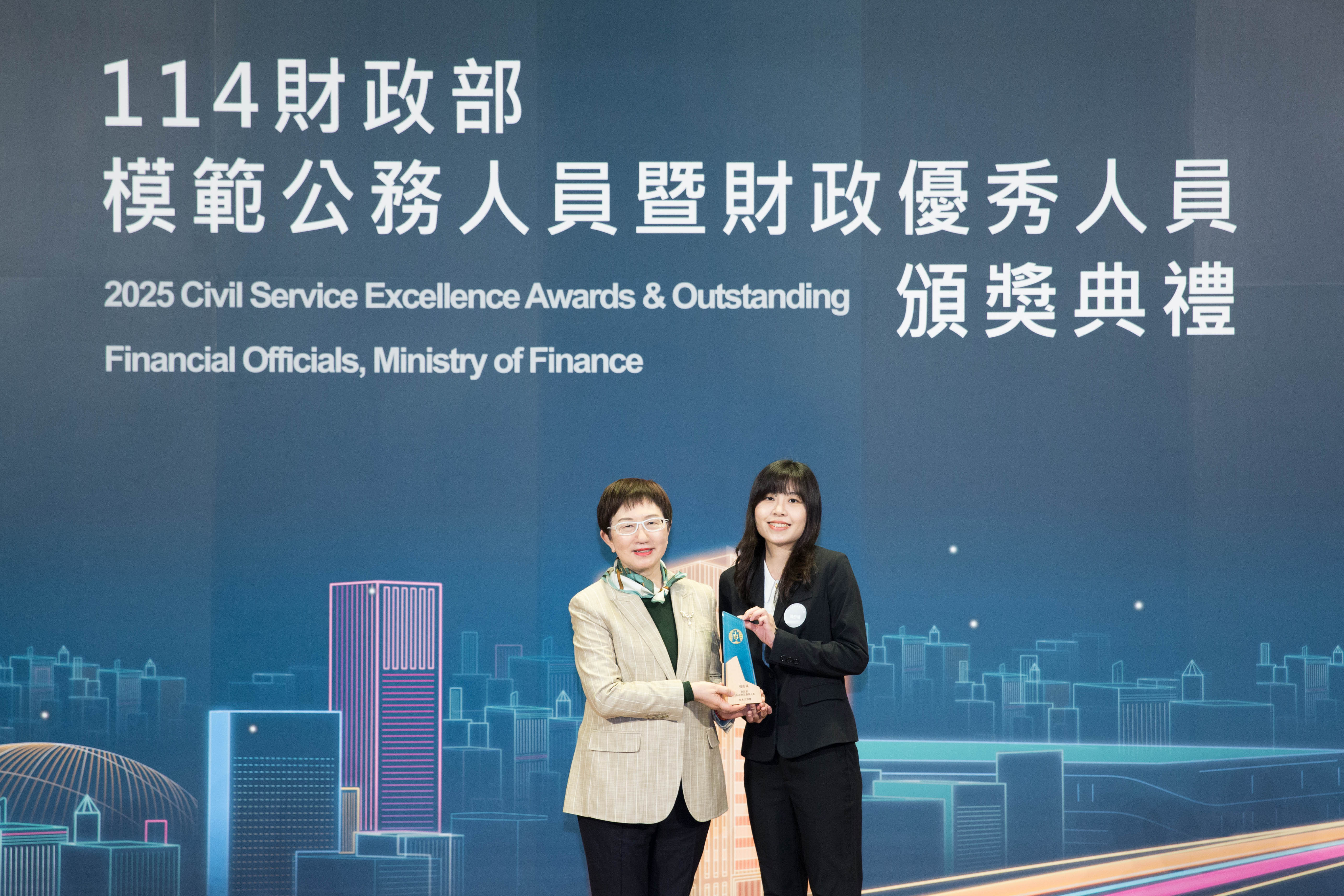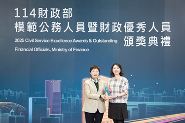 年財政優秀人員,並由財政部部長莊翠雲親自表揚。